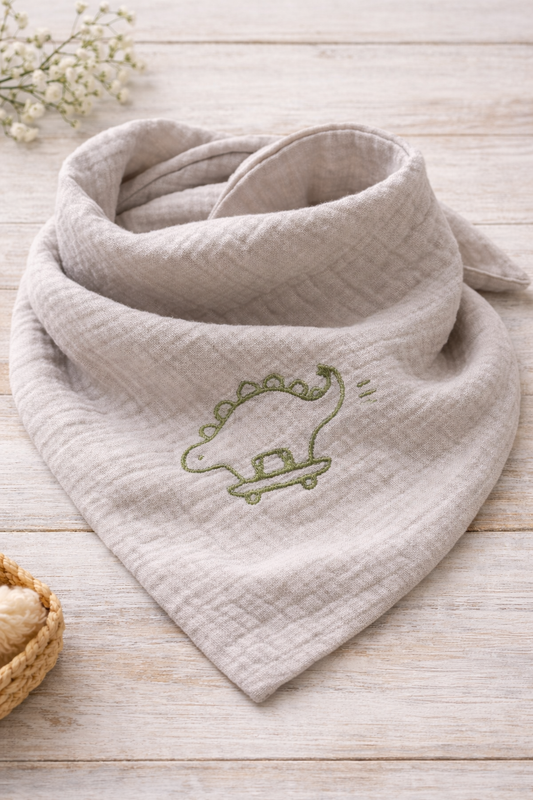 Dreieckstuch aus weichem Musselin mit Stickerei "Taube" und "Dino"