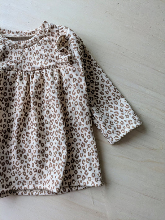 Rüschenkleid aus Leo Rib, selbstgenähtes Langarmkleid für Babys und Kleinkinder