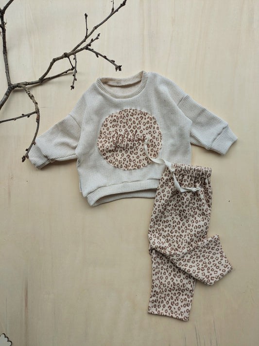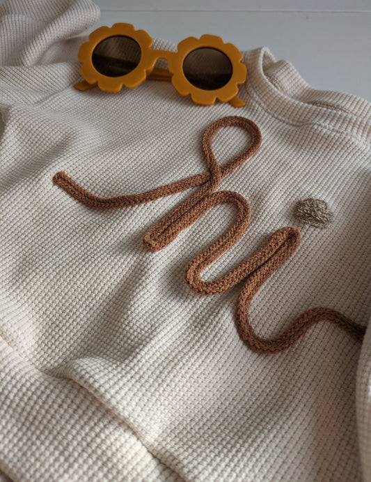 Oversized Sweater aus Waffelleinen – mit Leo-Applikation & personalisiertem Namen