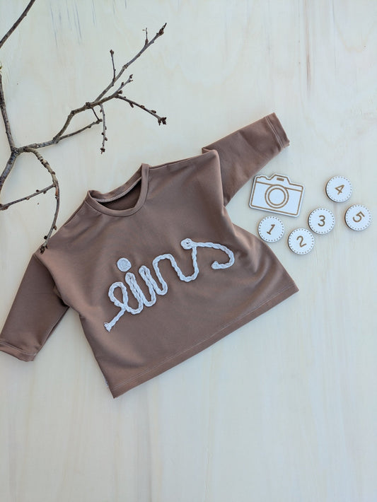 Oversized Sweater – zum Geburtstag, handgemacht mit Zahl aus Kordel |Personalisiert