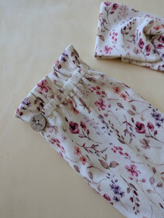 Paperbag Hose für Kinder in weichem blumigen Ribstoff