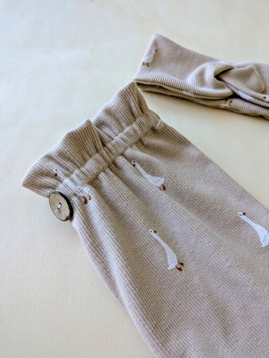 Paperbag Hose für Kinder in weichem Ribstoff | süßer Gänsestoff