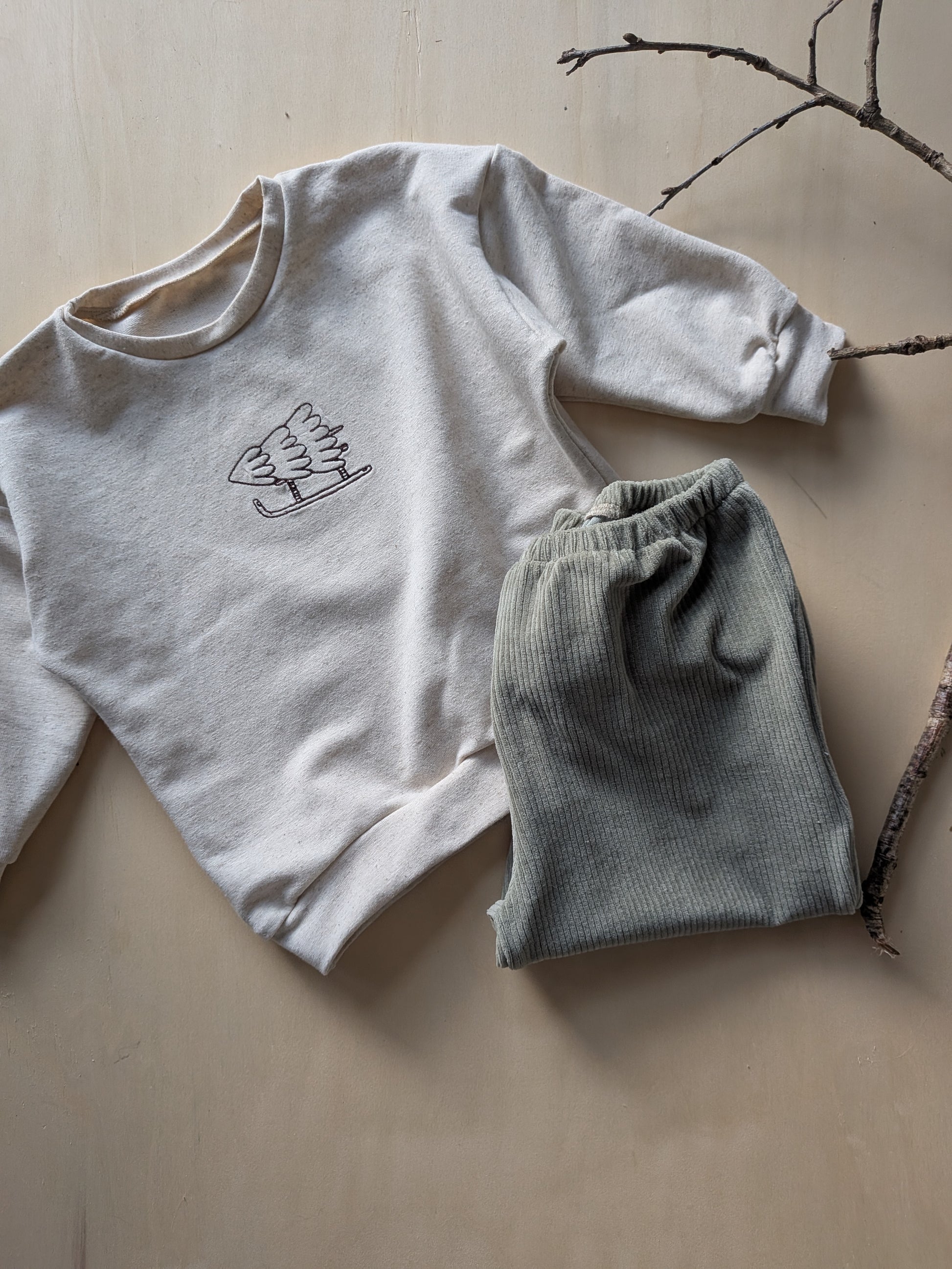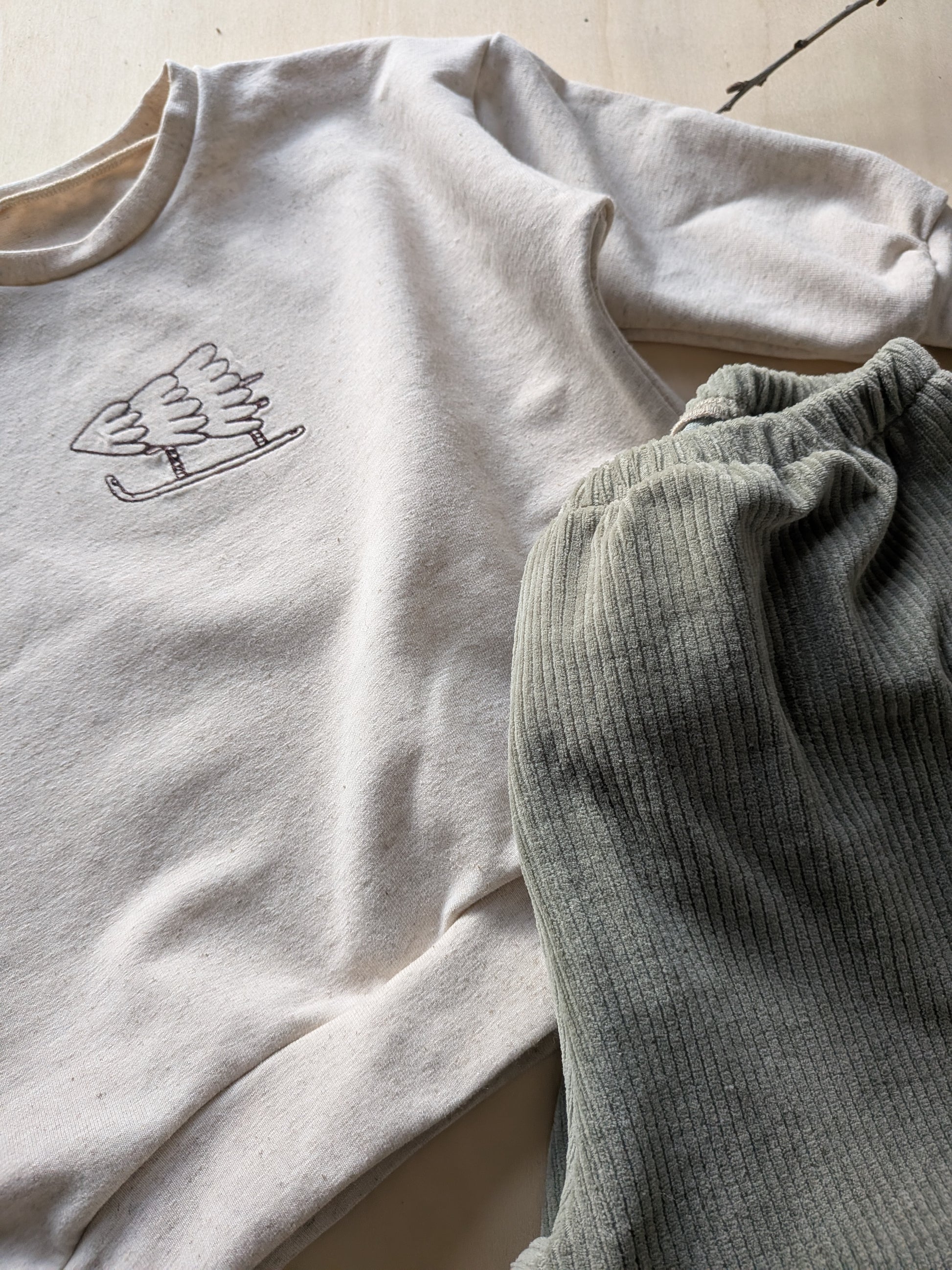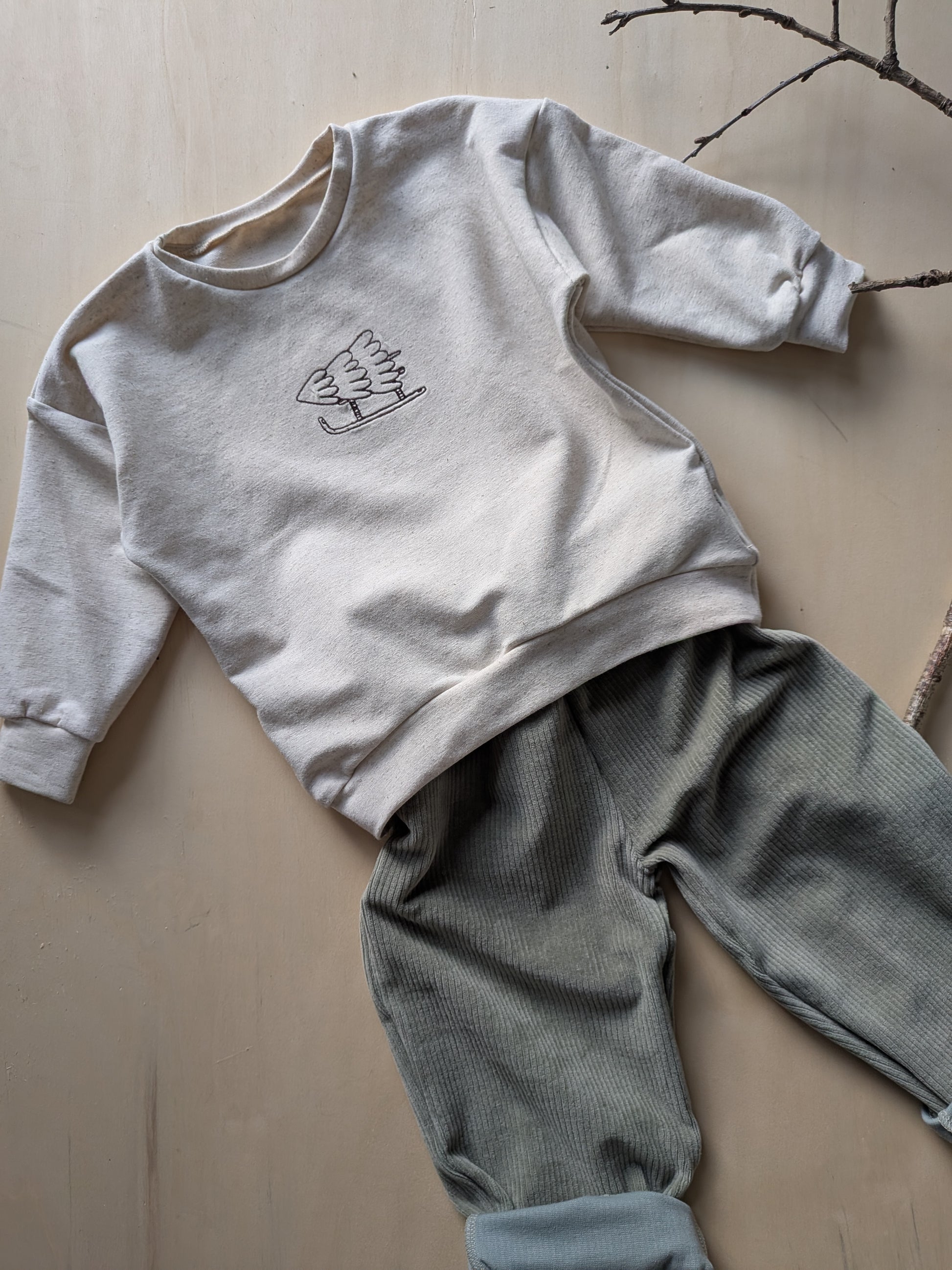 Handgenähter Weihnachtssweater mit Tannenbaum Motiv